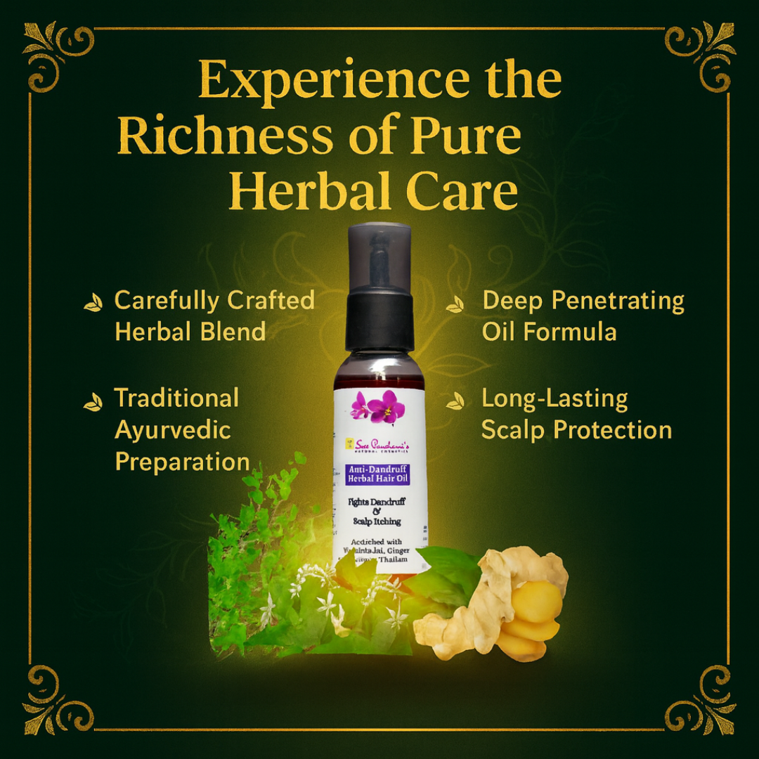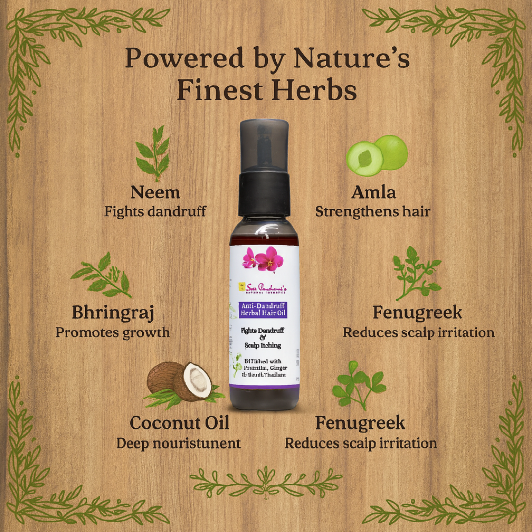 Say goodbye to flakes and itchiness, and hello to a calm, healthy scalp! Introducing Sreepanchamiβs Anti-Dandruff Herbal Hair Oil β a potent Ayurvedic formula blended with purifying herbs and cooling botanicals to target dandruff at its root and restore scalp harmony.