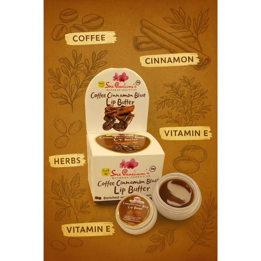 Say goodbye to dull, lifeless lips β and hello to a bold, invigorating boost of care! Introducing Sreepanchamiβs Coffee Cinnamon Blast Lip Butter β your lipsβ new best friend for intense hydration and a spicy-sweet pick-me-up. Infused with energizing coffee extract and warming cinnamon, this buttery balm wakes up your lips while deeply moisturizing and protecting them.