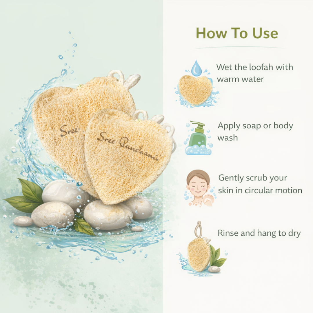 Say goodbye to dull skin and hello to a refreshing self-care ritual! Introducing Sreepanchamiβs Heart-Shaped Loofah β a cute, eco-friendly bath essential crafted from natural plant fibers, designed to gently exfoliate, stimulate circulation, and leave your skin feeling soft, smooth, and invigorated after every bath.