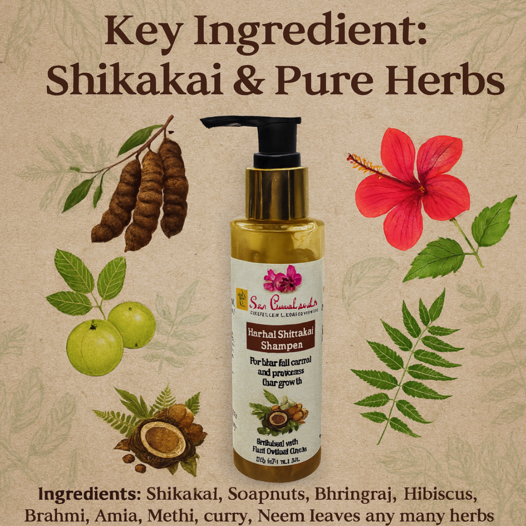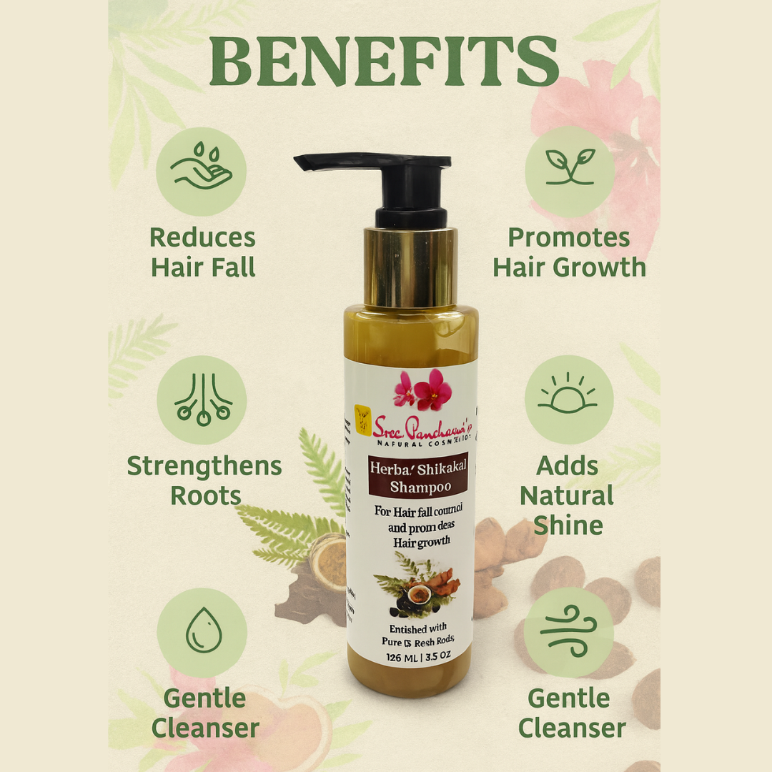 Say goodbye to chemical-laden shampoos and hello to traditional herbal care! Introducing Sreepanchami’s Herbal Shikakai Shampoo – a gentle, sulfate-free formula enriched with age-old Ayurvedic ingredients to cleanse your scalp, strengthen roots, and leave your hair naturally soft and shiny.