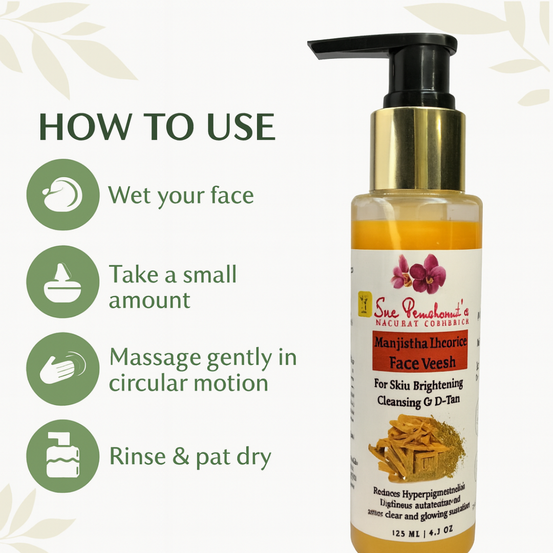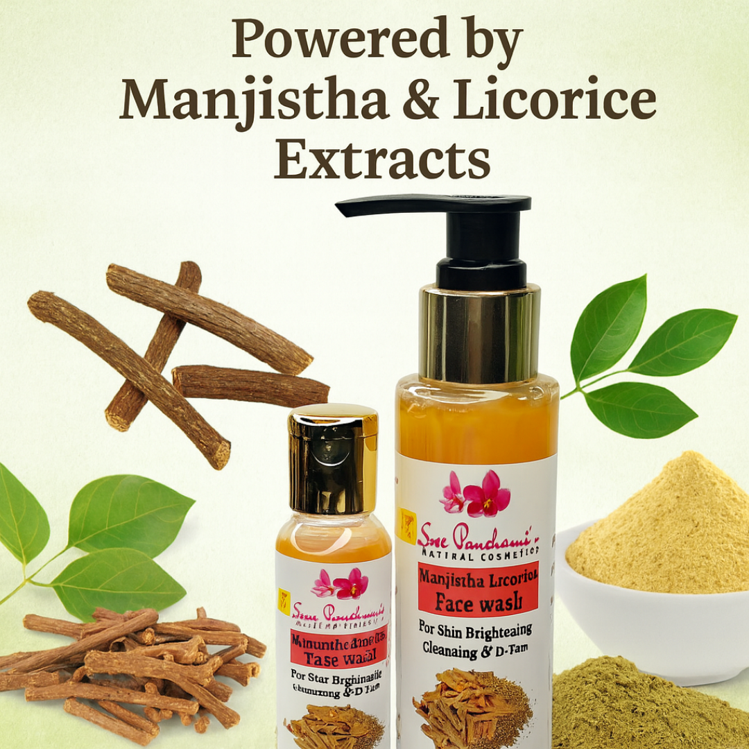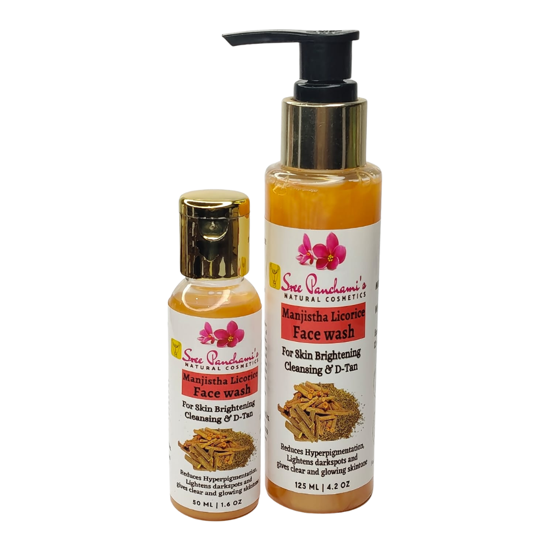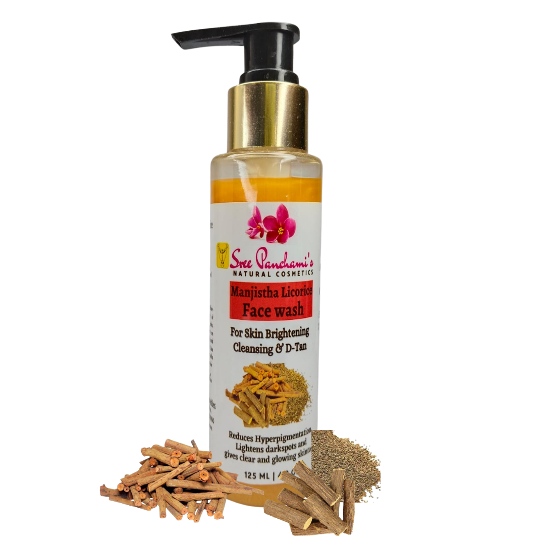 Say goodbye to blemishes, dull skin, and harsh cleansers – and hello to herbal clarity! Introducing Sreepanchami’s Manjistha Licorice Face Wash – your skin’s new best friend for a clear, even-toned glow. Powered by the purifying properties of Manjistha and the brightening essence of Licorice, this gentle yet effective formula cleanses deep while enhancing your skin’s natural brilliance.