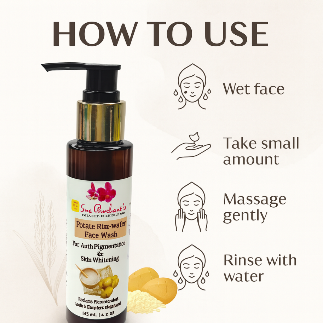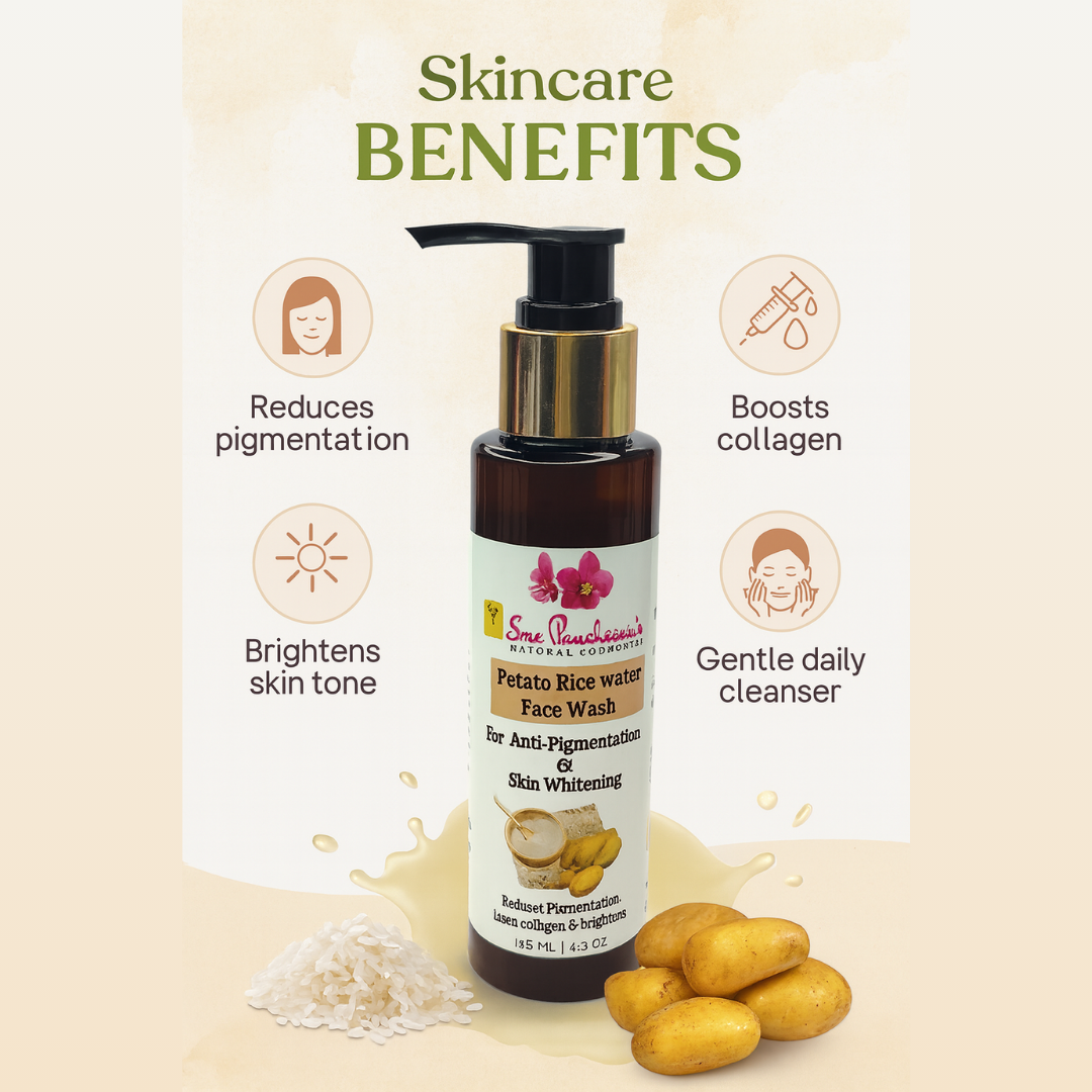 Say goodbye to dullness and uneven skin tone – and hello to your natural radiance! Introducing Sreepanchami’s Potato Rice Water Face Wash – your skin’s new best friend for a refreshing, daily cleanse. Infused with the brightening power of potato extract and the soothing nutrients of fermented rice water, this gentle formula deeply cleanses while promoting a smooth, glowing complexion.
