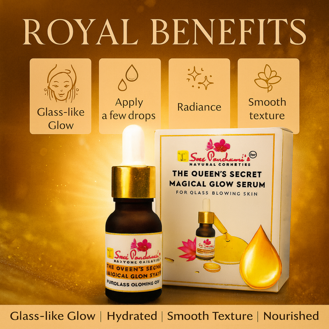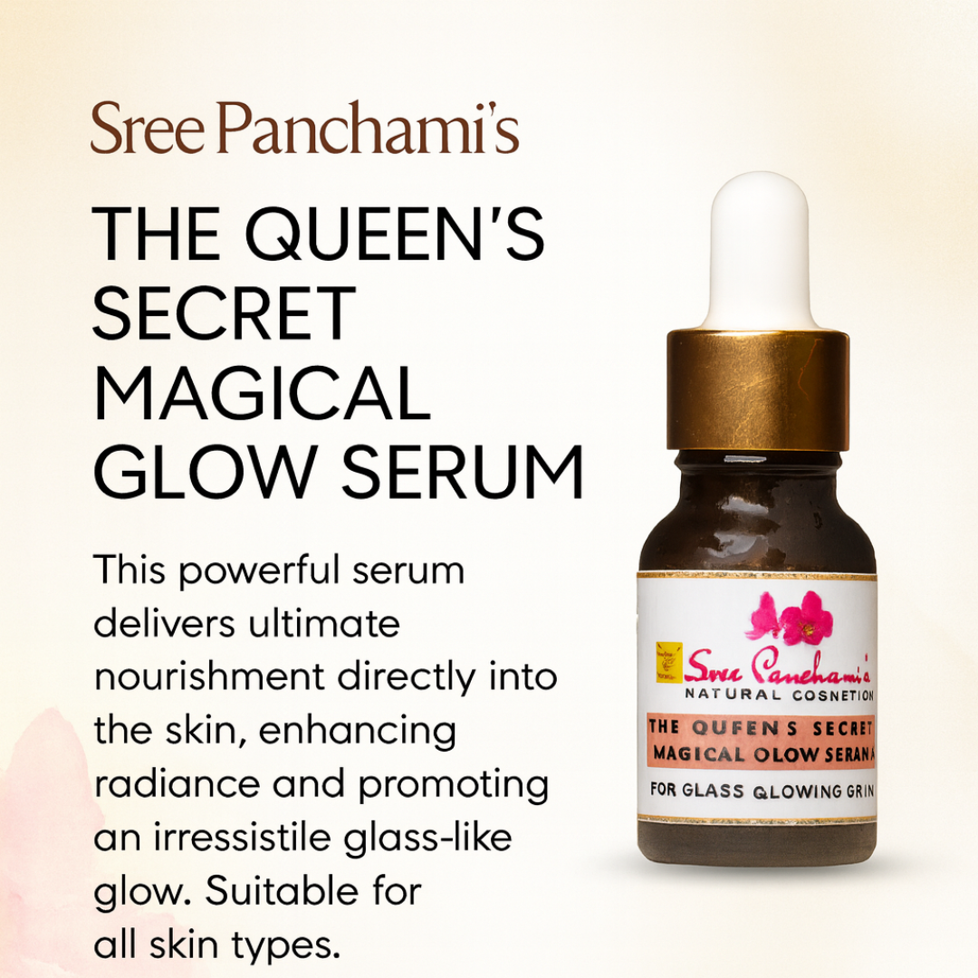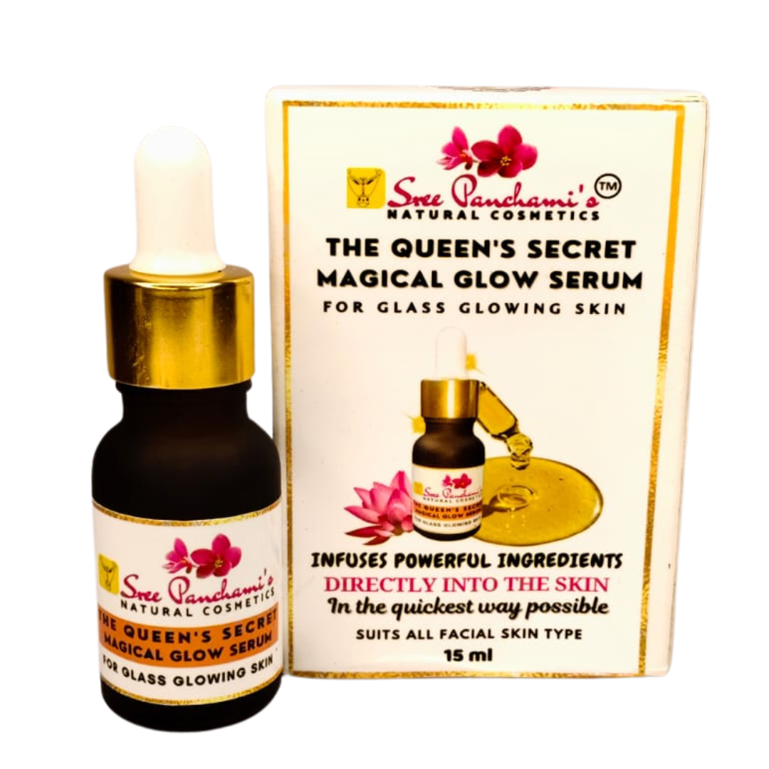 Say goodbye to dull, tired skin and hello to your royal glow! Introducing Sreepanchami’s Queen Secret Magical Glow Serum – your skin’s new best friend when you need an instant boost of radiance. This lightweight yet potent formula nourishes, hydrates, and enhances your natural glow in seconds, all without any greasy residue.
