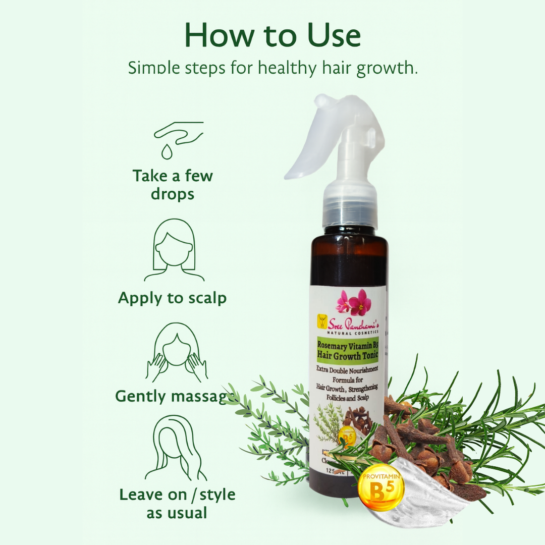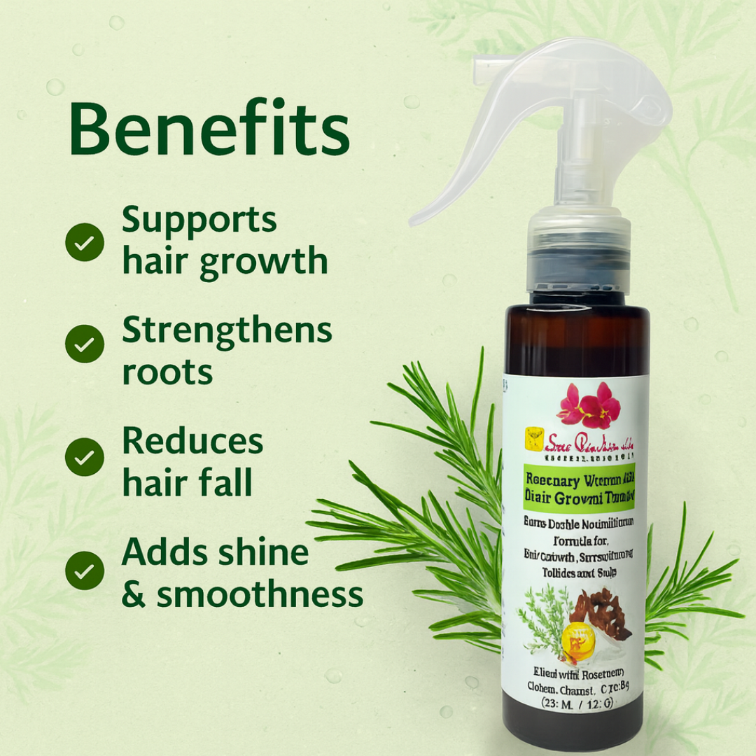 Say goodbye to weak roots and slow growth, and hello to fuller, healthier hair! Introducing Sreepanchamiβs Rosemary Vitamin B5 Hair Growth Tonic β a lightweight, non-greasy formula powered by Ayurvedic herbs, active botanicals, and essential nutrients to energize your scalp and promote visible growth.