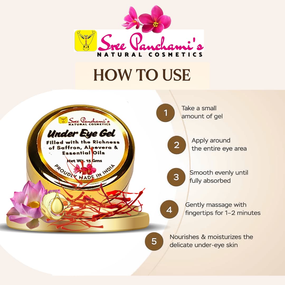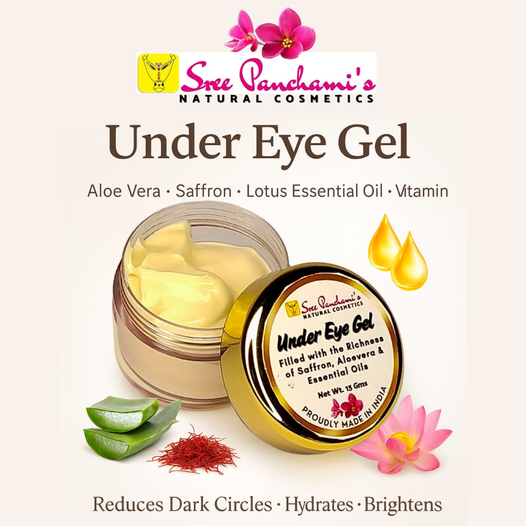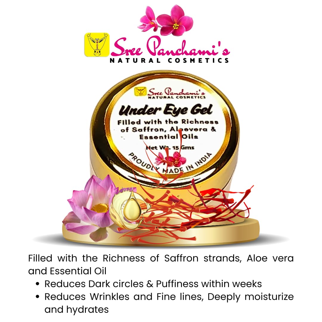 Say goodbye to dark circles, puffiness, and tired eyes – and hello to a brighter, well-rested glow! Introducing Sreepanchami’s Saffron Under Eye Gel – your delicate under-eye area’s new best friend for daily herbal care. Infused with pure saffron, aloe vera, and soothing botanicals, this cooling gel targets pigmentation, hydrates deeply, and revives tired-looking eyes.